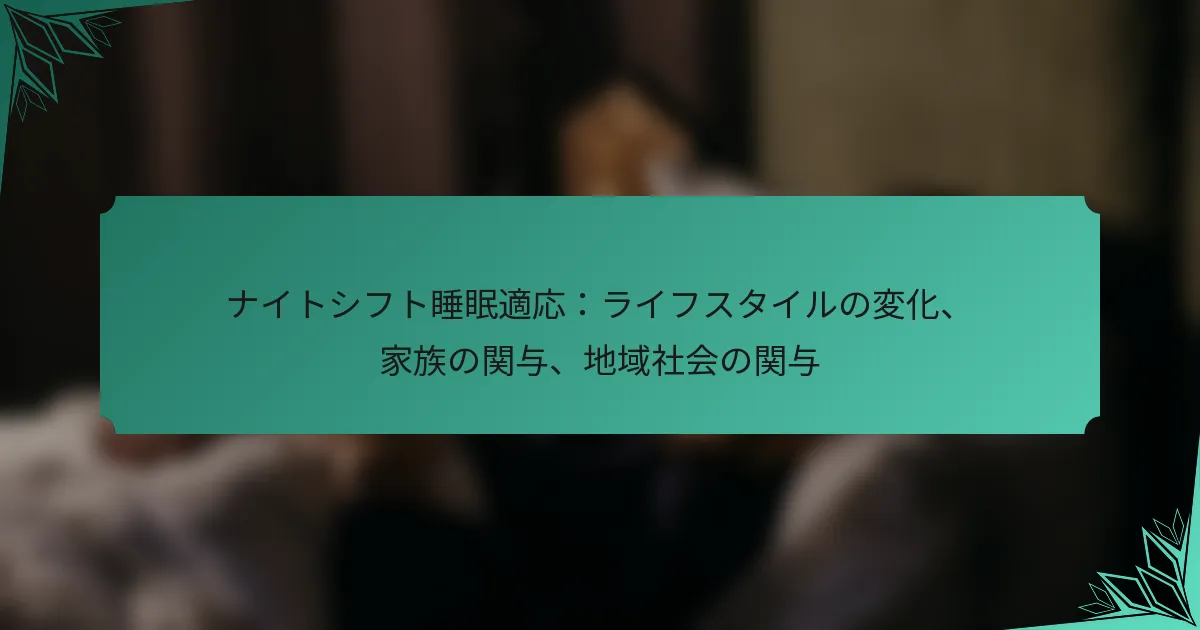 夜勤のスケジュールに適応するには、睡眠の質と全体的な健康を向上させるために意図的なライフスタイルの変更が必要です。睡眠環境を最適化し、バランスの取れた食事を維持し、疲労を管理することで、夜勤労働者は健康を大幅に改善できます。さらに、家族のサポートや地域社会への参加は、同様の課題に直面している人々の間で休息とつながりを促進するための重要な役割を果たします。